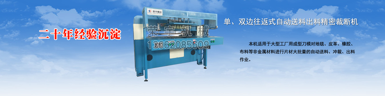 鹽城榮宇機(jī)械有限公司座落在美麗富饒的黃海之濱—鹽城,是我國(guó)皮革、制鞋、橡塑、箱包、手套、體育用品、汽車用品、服裝等行業(yè)用裁斷、下料、切條、拉布鋪布、壓花復(fù)合機(jī)械專業(yè)研制生產(chǎn)的企業(yè)。